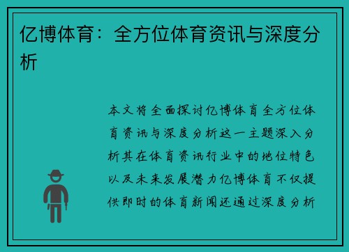 亿博体育:全方位体育资讯与深度分析